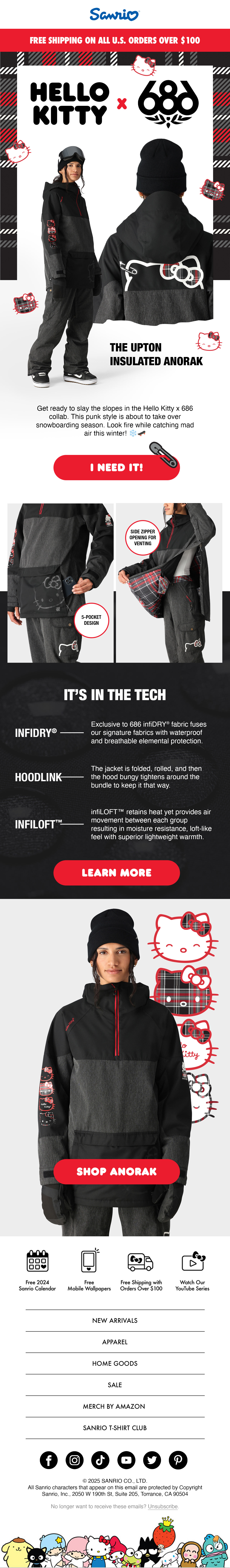 Design ideas for a 686 x Hello Kitty collab and A Cinnamoroll Collection release.